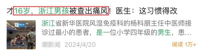 浙江就有个16岁男孩,每天拿果汁当水喝,结果年纪轻轻就得了痛风!