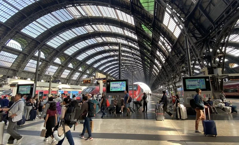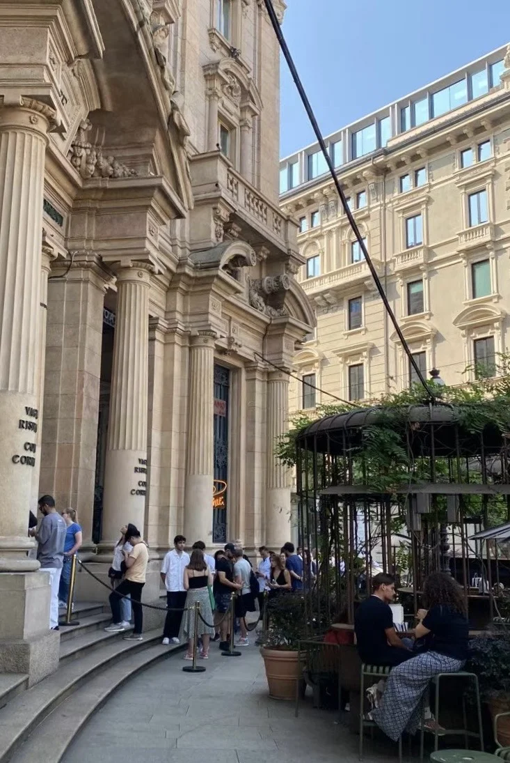 清早起来,离开了La Spezia,前往 Milan,三个半小时后,11点钟来到了热腾腾,闹哄哄的米兰火车站。我们的旅馆离火车站不远,便一路走去。且不管能不能Check- in,至少可以放下行李啊。远远见到米兰大教堂,几步一回头地不住观望。很运气,提前办好了Check- in,坐地铁出去看看。见一个非常漂亮的建筑,门口排着长队,问:什么的干活?答:Starbucks。