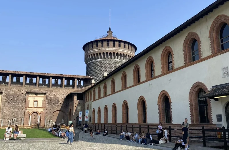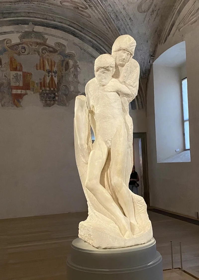 酒足饭饱,继续瞎逛。来到了 Castello Sforzesco(斯福尔扎古堡)。今天运气好得不得了,免费参观,省我10块钱😜😜😜。斯福尔扎古堡博物馆拥有达芬奇创作天花板的“木板室”(Sala Delle Asse)。镇馆之宝是米开朗基罗最后的雕塑作品 The Pietà Rondanini(隆旦尼尼圣殇)。
