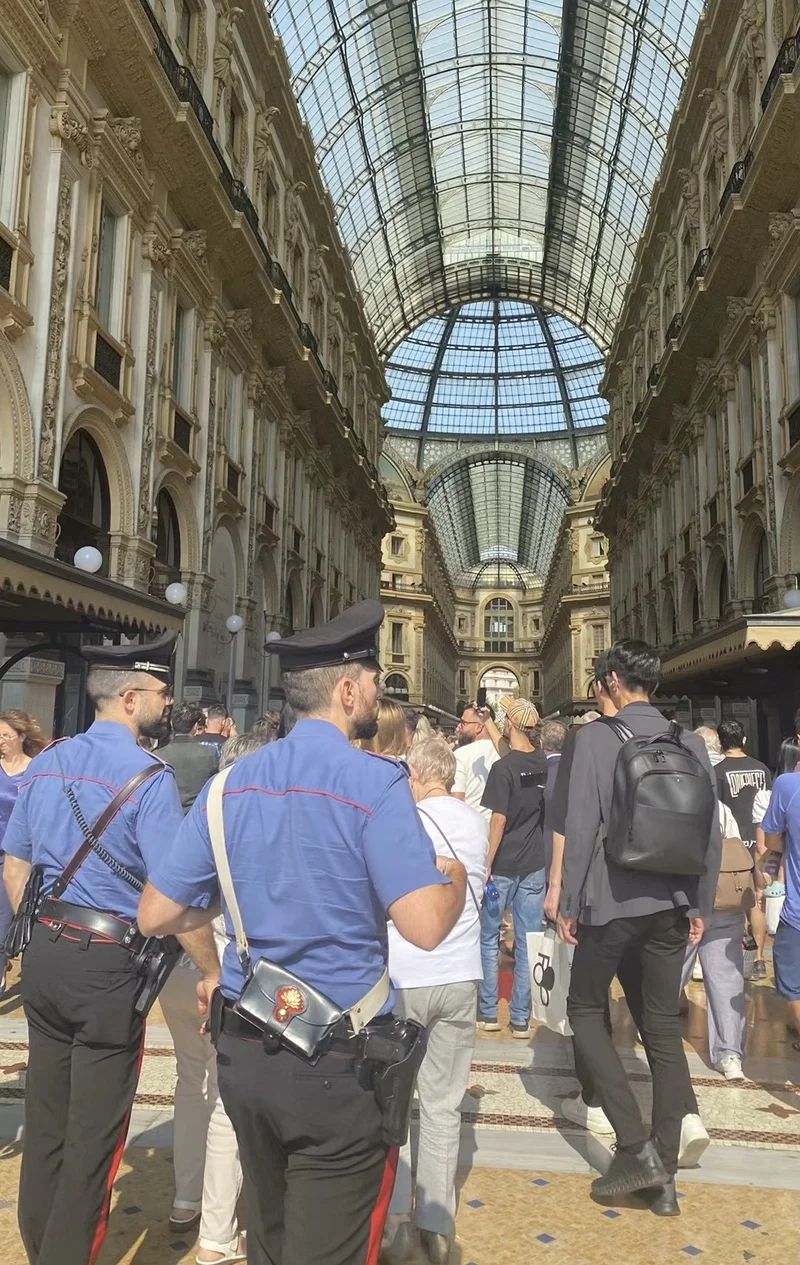 出得门来,便去旁边的Galleria Vittorio Emanuele II(艾曼纽二世拱廊)。囊中羞涩,做了一次 Window Shopping,惭愧惭愧。在这里,第一次遇到意大利的大盖帽😀
