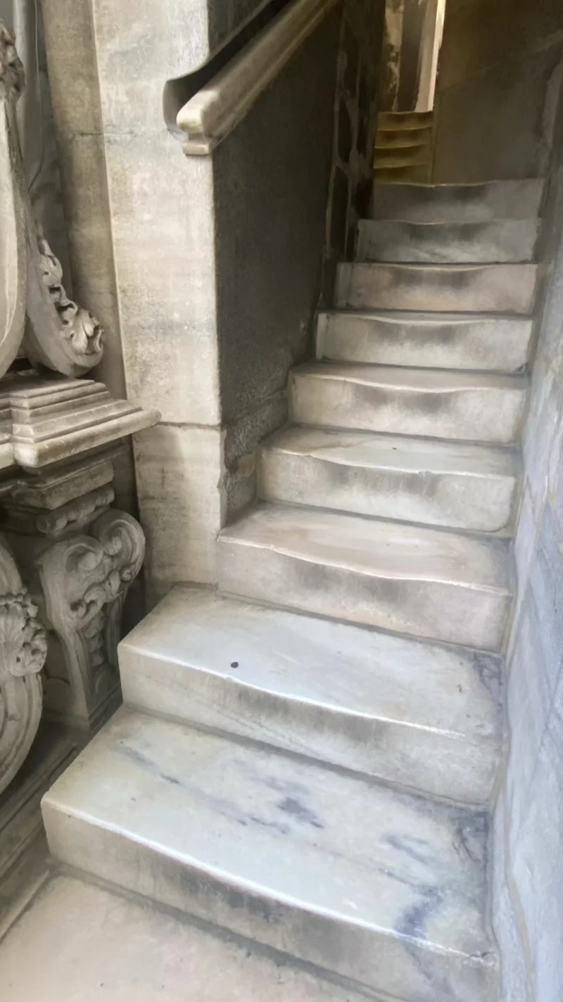 接下来就是登顶。这次好,有电梯坐。看到了大教堂的密密麻麻的尖顶的细节。虽然最后有二三十台阶,真想光脚踩在像玉石一样的大理石台阶上,为免丢人,只好作罢,想来真是遗憾。