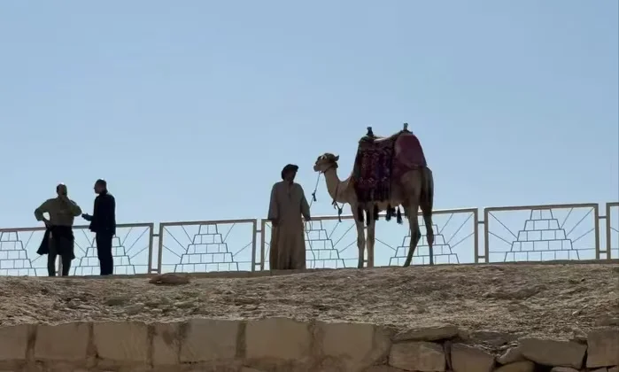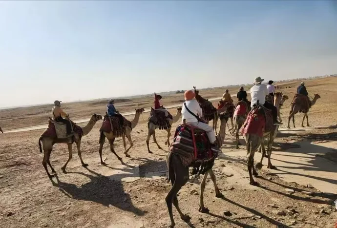 做为游客,金字塔周围有骆驼队供骑行摆拍。网上吐槽最多的就是这里的宰客现象。我们有导游把关,由他谈好价钱,一切都还顺利。