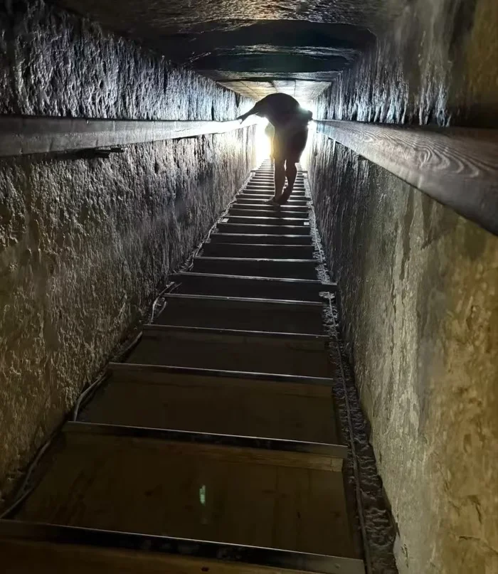 2010年左右,香港探险家伍士铨团队也曾研制小型机械车,深入胡夫金字塔秘道,拍下石门后的红色象形符号,推测可能是古埃及工人留下的记号或宗教符号,进一步丰富了金字塔的探索历程。
