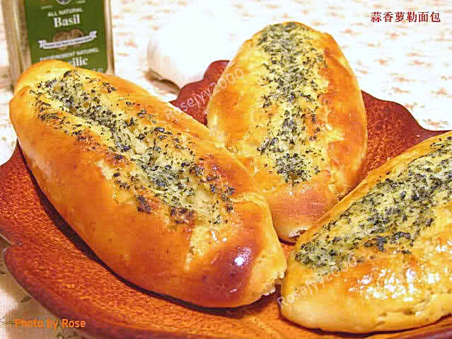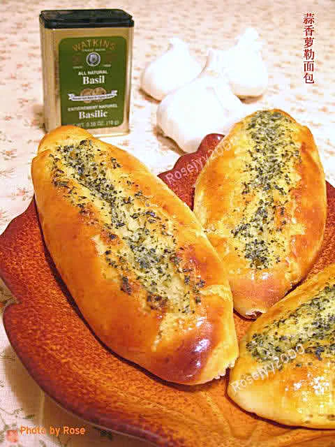 C 涂在面包表面配料:无盐奶油30克,糖粉10克,盐1/2茶匙,鲜奶1茶匙,干萝勒叶碎1茶匙,蒜茸两粒(研磨成茸),芝士粉1茶匙。