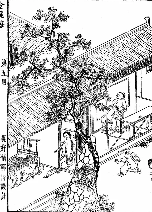 第五回:因西门官人与武大婆娘偷情之事,郓哥想巧取些银两,遭王婆打骂驱赶,怀恨在心。找到武大告知实情,设计报复。武大捉奸,不曾想被西门庆踢中心窝,卧床不起。王婆使计,让西门庆出砒霜,潘金莲骗武大服药,两妇人再收拾杀人现场,企图蒙混过关。一计赶着一计,可怜三寸谷丁哪里对付得了,糊里糊涂地去了。