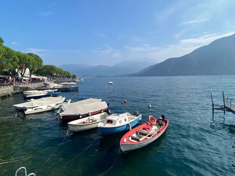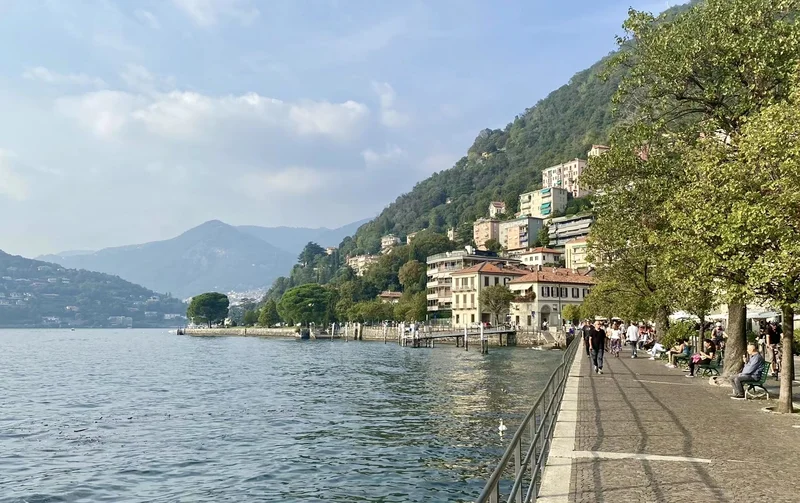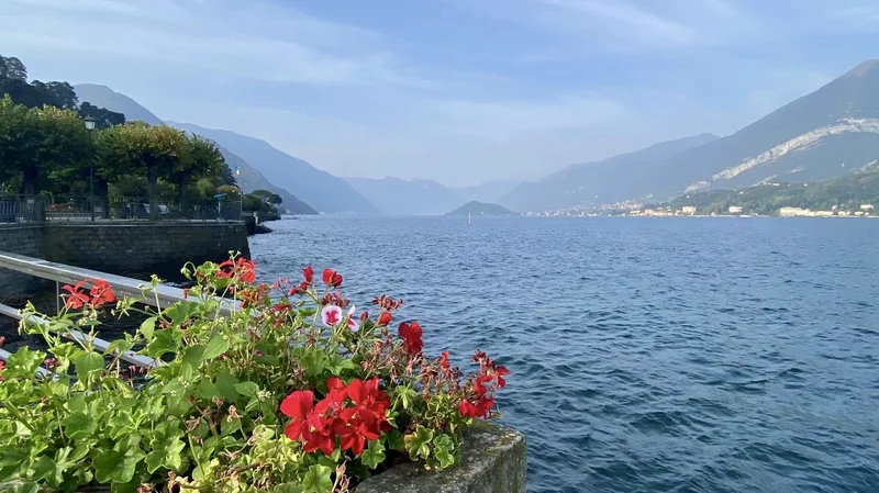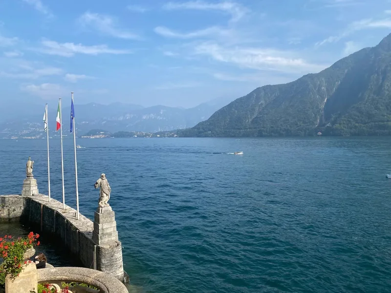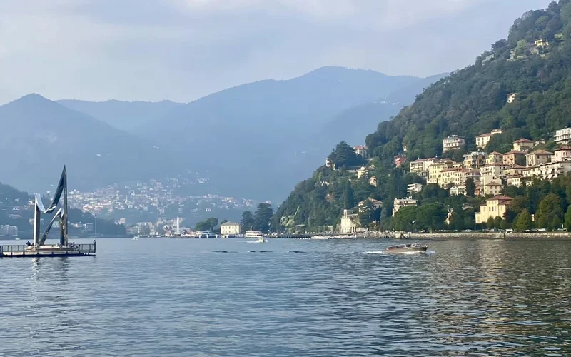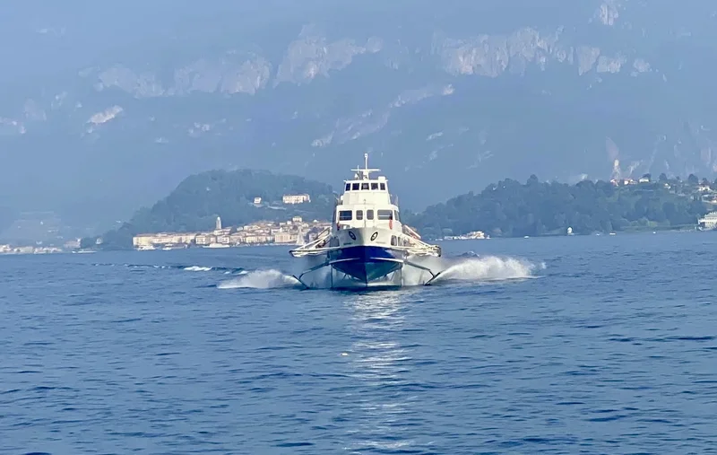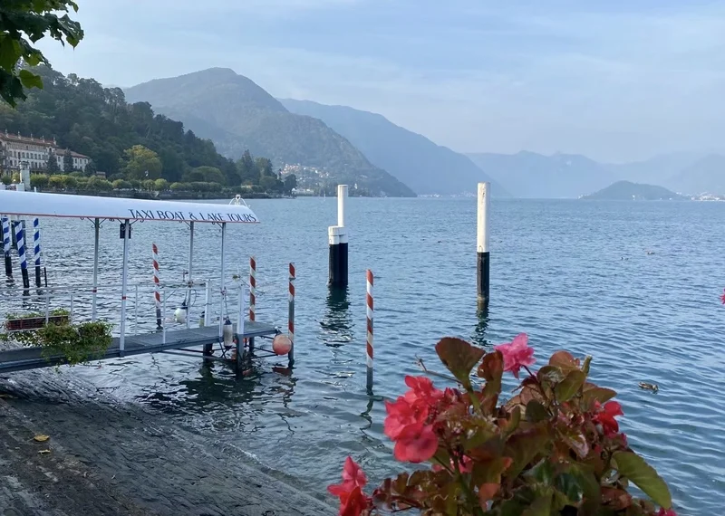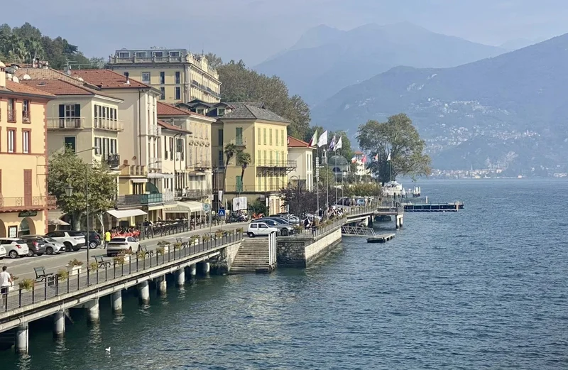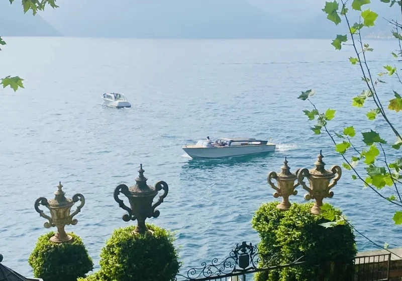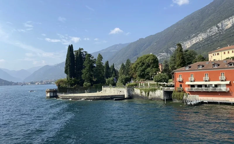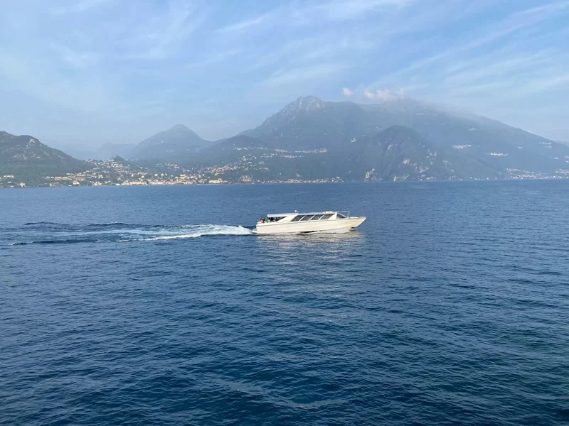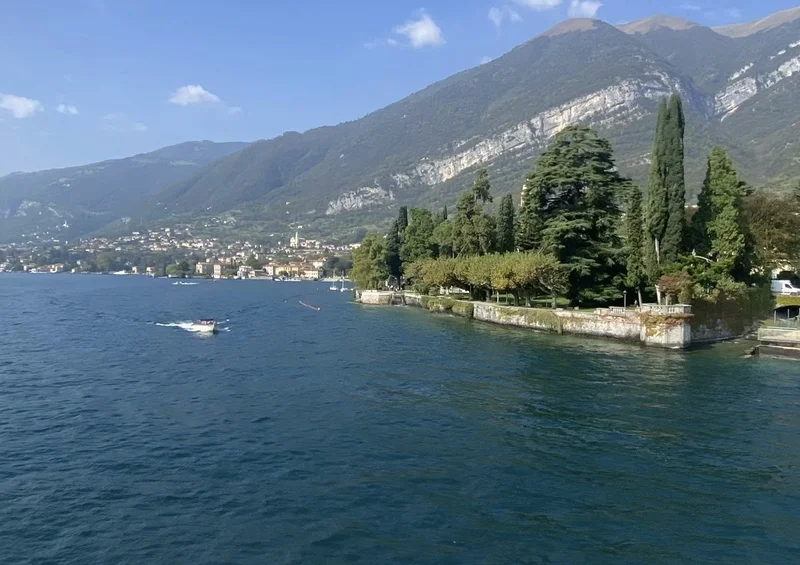 渡轮航行在 热气腾腾的 Lago di como (科莫湖)上,很快,我们来到了 Bellagio 镇。