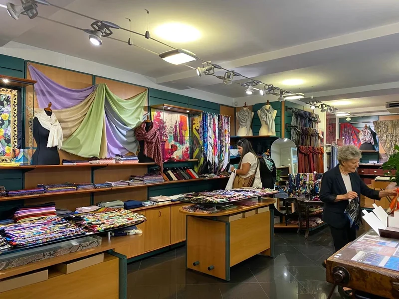 在静静的小巷里走着看着,一家家的小店开始开门营业了。被一家小小的丝绸店吸引,更被年纪已不小的女店家的优雅气质所折服。我们俩早已看花了眼,已经拿不定主意了。干脆拜托她帮我们挑选了好些丝巾和领带,自己留些,更是非常好的伴手礼。老板娘的眼光真的了得!几件在我们眼里不怎样的丝巾领带,回到家后再看看,是越看越喜欢,真的是太耐看了,人人都夸。