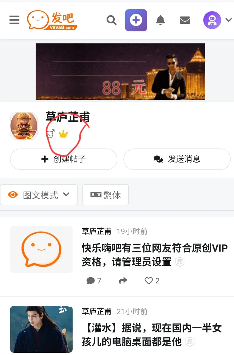 成为原创VIP以后,在ID旁边会出现一个金色的小皇冠。