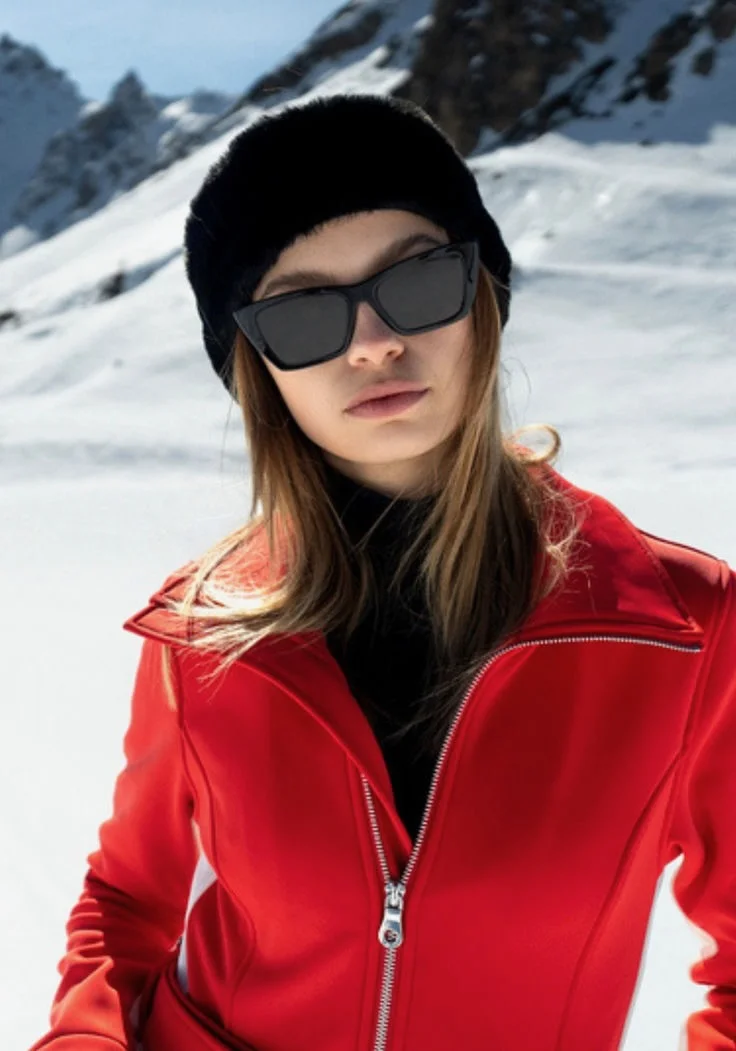 因为这儿都是天然的降雪,干燥而蓬松,有轻盈的粉雪触感。所以跟在 Annie 的后面,能确切看到她的板刃在切弯时扬起的阵阵晶莹的雪雾 …… 那一抹红色的身影,宛如仙女在白云上轻盈飘荡。
