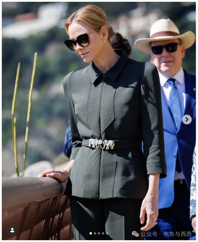 平时公务依然是高冷大佬范,揭幕新花园,也要全套黑色LV裤装搭Fendi墨镜,刺绣缝线和大象扣腰带很别致↓↓