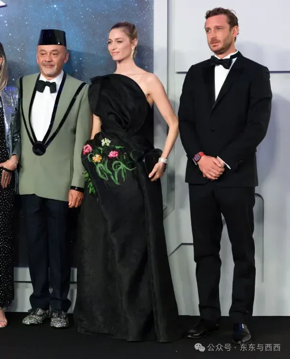 碧翠丝穿Dior黑色刺绣花裙,戴西班牙珠宝品牌Suárez系列,她老公皮埃尔是卡洛琳公主的小儿子↓↓