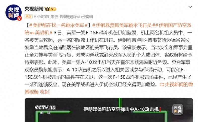 相关报道:美媒:伊朗可能以飞行员为饵,击落击伤六架战机!