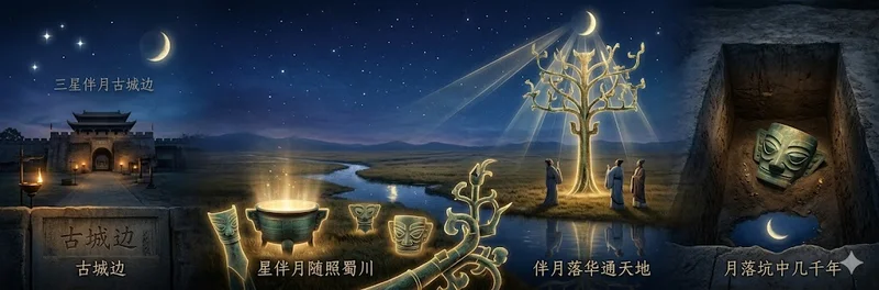 日暮抵遗址,云开月出,三星恰伴其旁。恍然有悟,乃赋短章,以记一时之感。