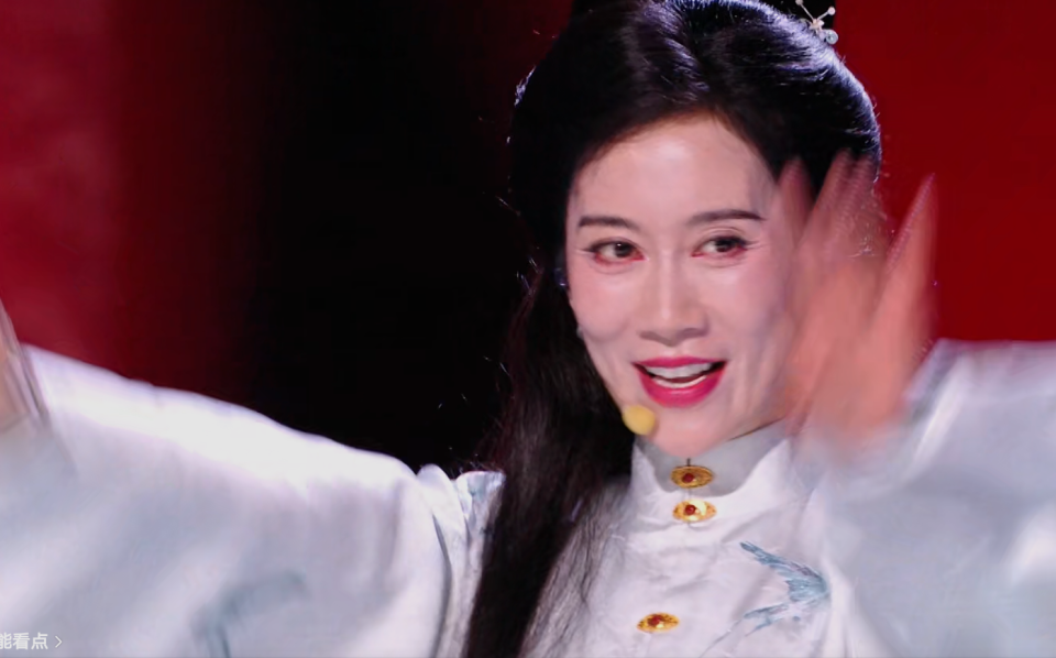 初舞台唱《剪》,一袭古装,韵味十足,只是刚开嗓就被发现破绽——垫音大到像“二重唱”。
