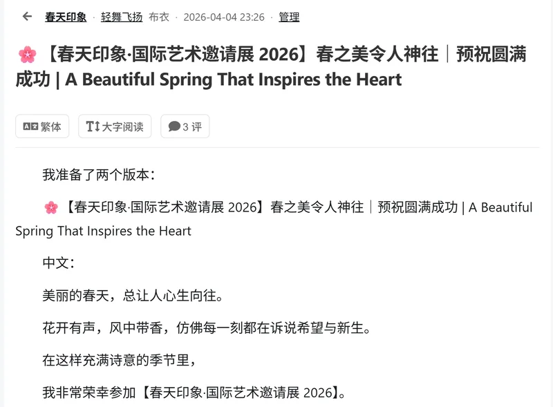🌸【春天印象·国际艺术邀请展 2026】6国4洲·15位艺术家与朋友的国际盛会与艺术突破 | 15 Artists & Friends from 6 Countries & 4 Continents