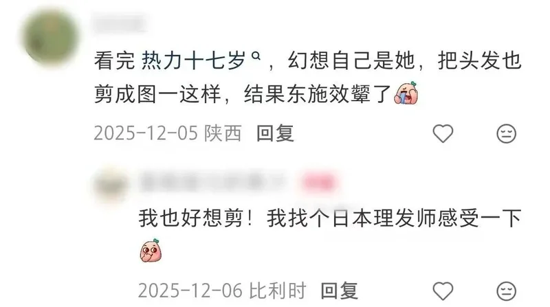 网友:幻想自己是她,把头发也剪成这样,结果东施效颦了。