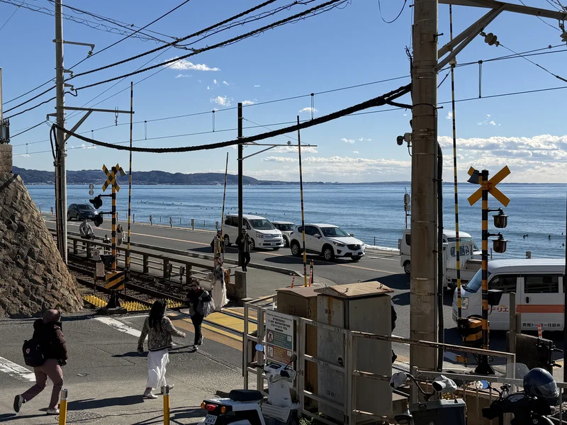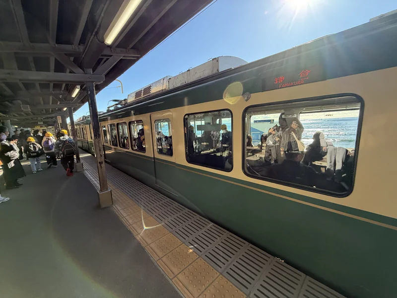在镰仓的海岸线旁,绿皮火车 江之电 沿着轨道缓缓驶来。没有喧闹的速度,只有恰到好处的从容,像一段被放慢的青春。