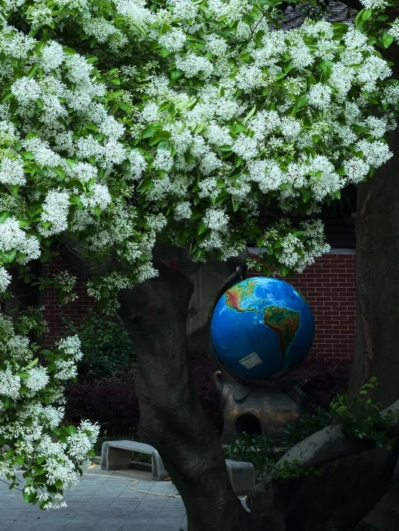 百年流苏, 如雪覆枝, 送来沁人心脾的芳香。这株百年流苏相传为沈葆桢亲手种植。