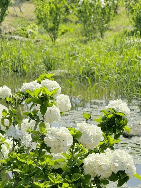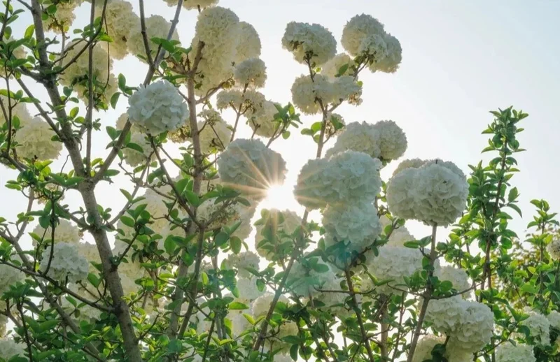扑面而来的生机, 那些綠白相间的花球, 仿佛撞见了一场『初夏的雪』