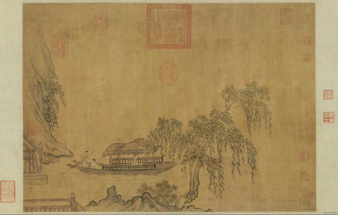 南宋 马和之(传) 《柳溪春舫图》