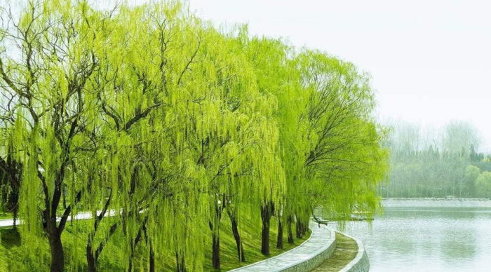 当我们寄予柳树太多意象太多思考时,却往往会忽略柳树本身就是最好的欣赏与歌咏对象,将柳树的形象从那些多情的寓意中剥离出来,能够使得我们更好地领略柳树之美。柳树万丝垂绦,碧绿成妆,点缀山河,无怪唐代诗人贺知章会专门为此写下《咏柳》一诗: