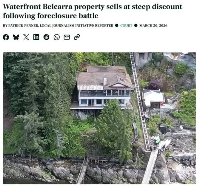 业主Tang坚决反对,认为成交价未反映公允市价。她引用2025年的评估接近400万、2026年BC Assessment近470万,以及附近Belcarra Bay Road一处房产今年早些时候以480万成交作为比较。