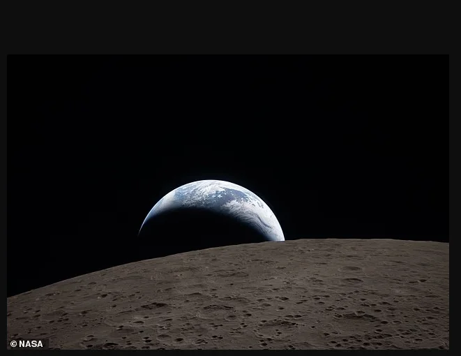 NASA在X平台上解释称:“阿耳忒弥斯二号机组在2026年4月6日绕月飞行时拍摄了这一幕‘地球落下’的画面。这张照片让人联想到58年前宇航员比尔·安德斯在阿波罗8号任务中拍摄的经典‘地出’影像。”