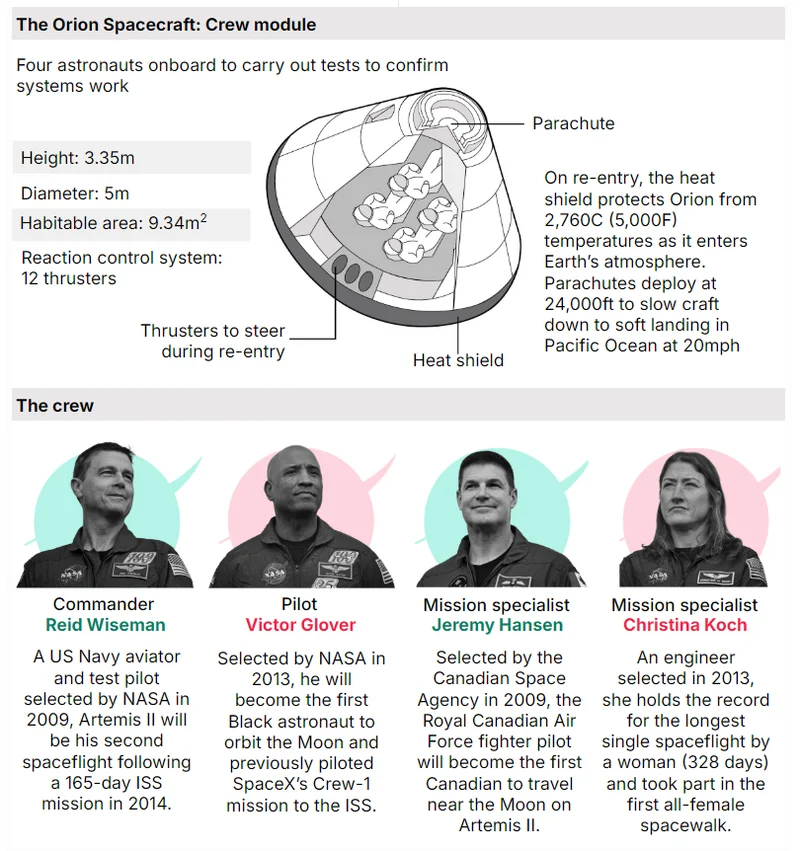 完成绕月飞行后,“猎户座”飞船将借助地球引力返回,预计将在本周五溅落太平洋。他们最后的考验,将是以约每小时25,000英里(40,200公里)的速度重返大气层,随后打开降落伞完成着陆。
