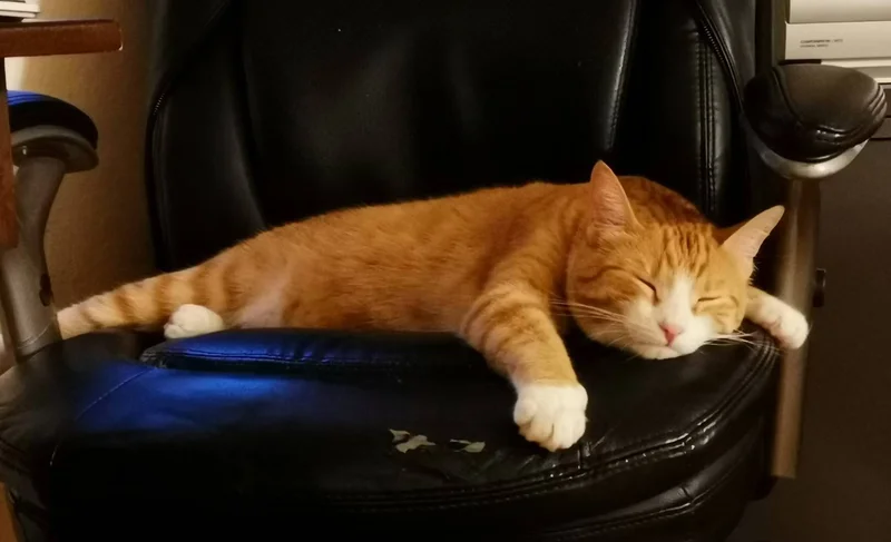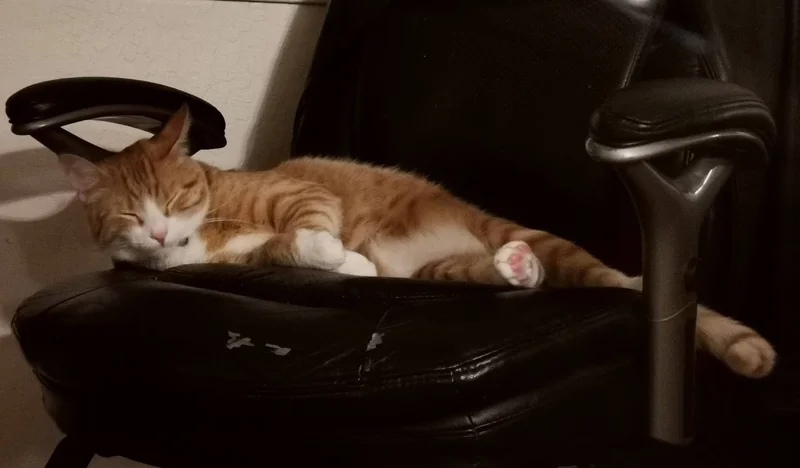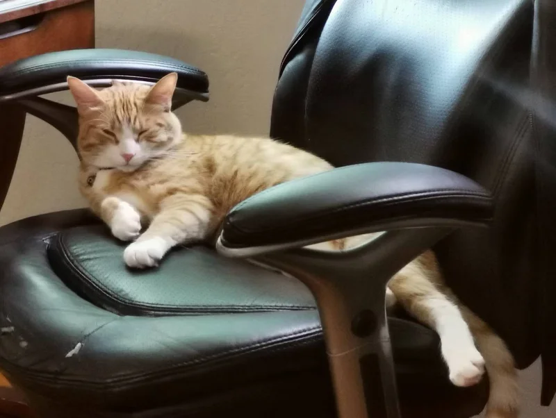 这疲惫的家伙就是我儿子的小弟, Hobbes. 我儿子六年前的一个下雨天,从他的车底下捡到他的时候,大概两,三个月大。儿子大学毕业,把他也带回了家,一个月后,他毫不客气的就把我们的家当作了他的地盘。