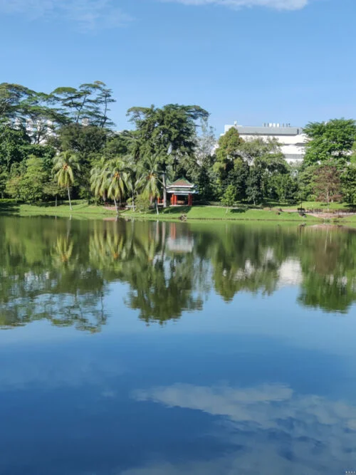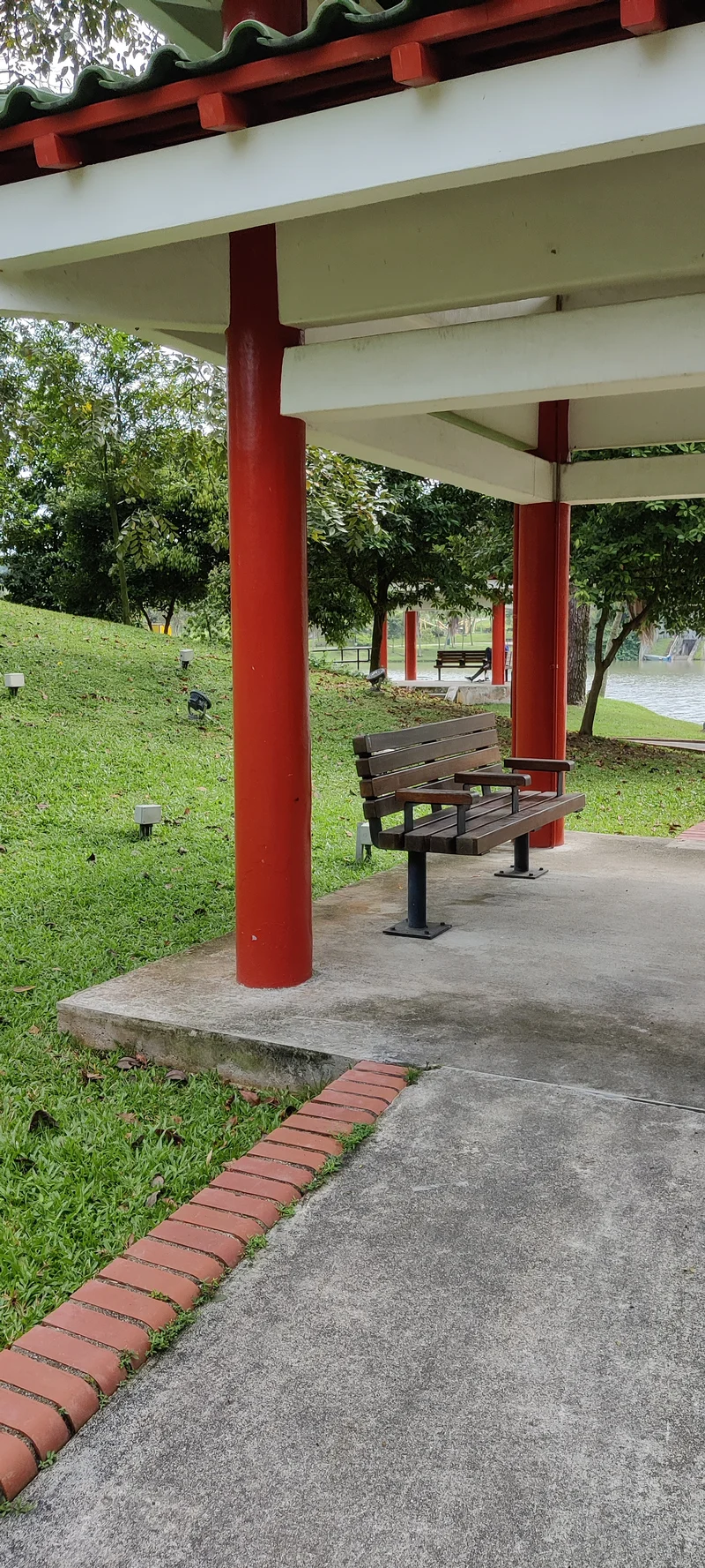 附近的水池建成中国古风韵味的公园。 东方古韵建筑才是顶流时尚文化。