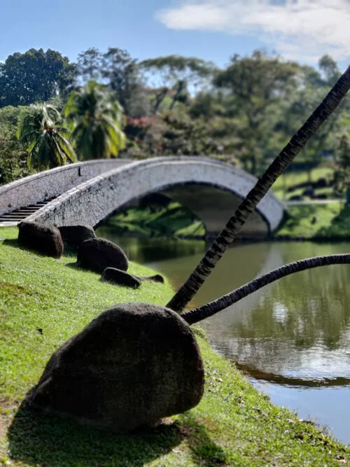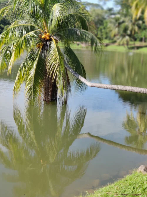 椰树倒卧水中