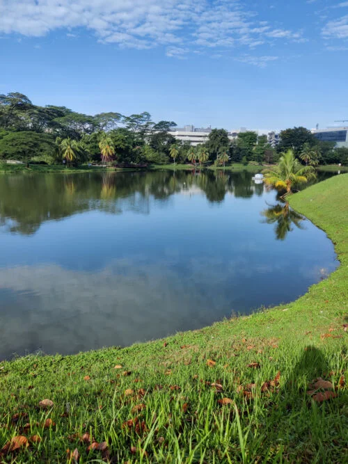 这是我家附近的水池, 清澈透明映藍天。