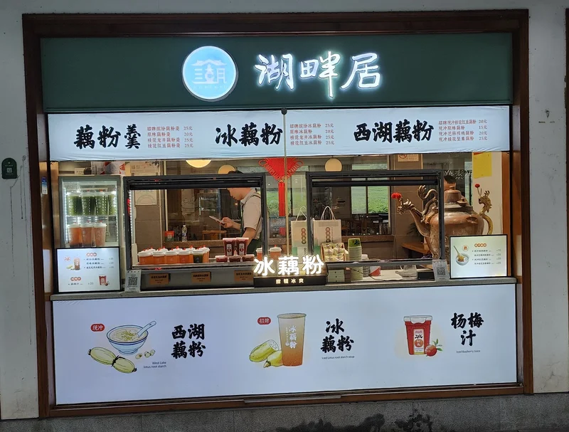 路过湖畔居(灵隐小分号),各色杭帮小点心:葱包桧儿、豆腐干、杨梅汁: