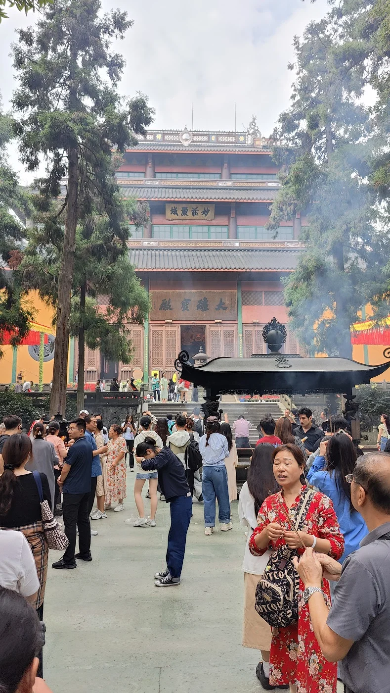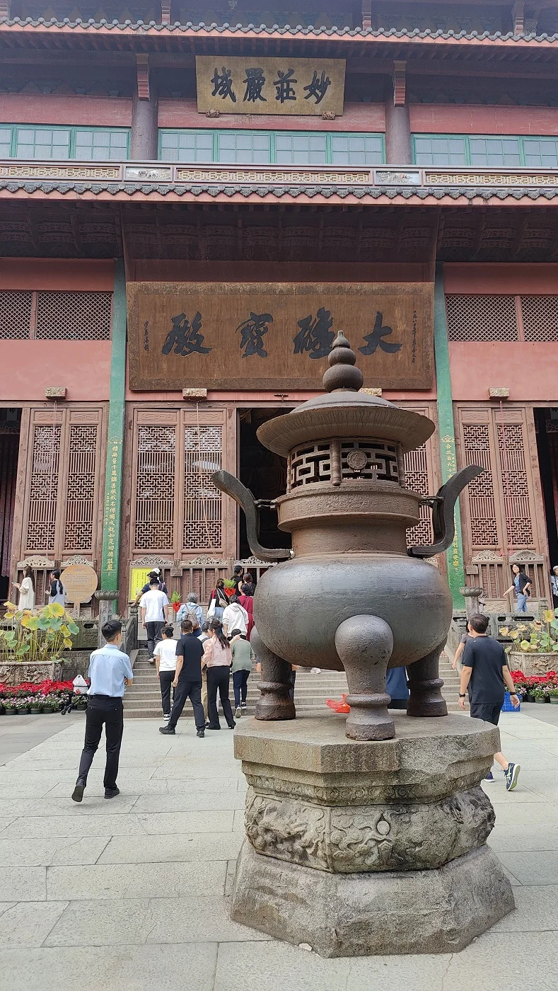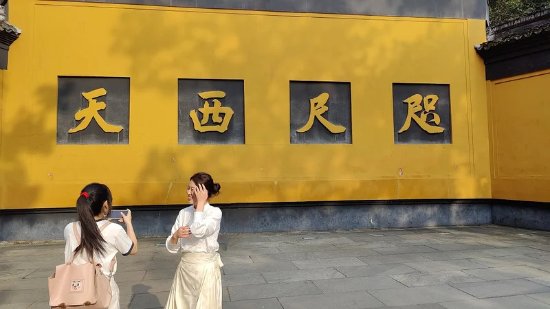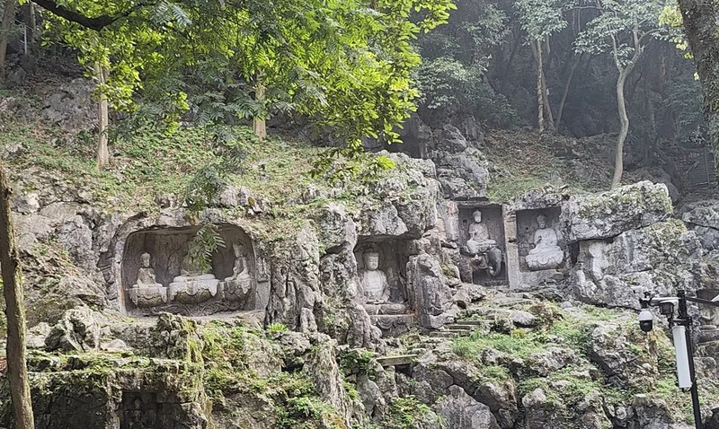 今天无别的安排,阿贝兄嫂陪我们灵隐进香去。依然网约车,一路堵车乌龟爬、进了景区更是慢慢爬,终于爬到灵隐景区的巴士、出租停靠区域,不能再往里开了。下来老老实实走路,慢慢走。