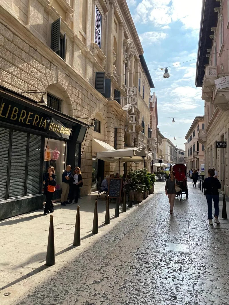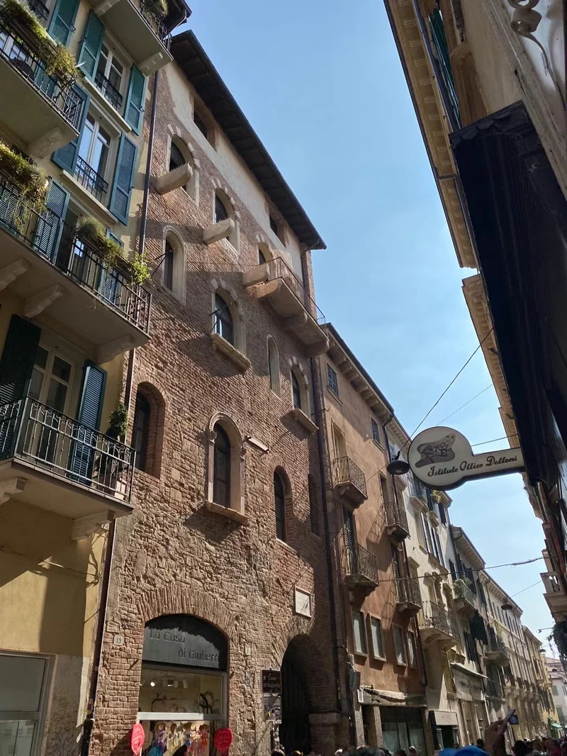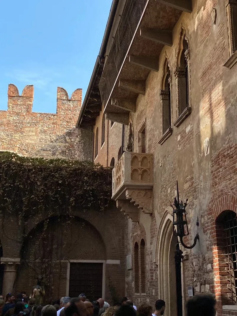 莎士比亚的《罗密欧与朱丽叶》使这里成为情侣圣地。走过商业街,朝“朱丽叶的阳台“走去,但见人头攒动。男女老少,里三层外三层,为保佑他们的爱情,轮着上前摸呀摸呀的,起劲得不得了!