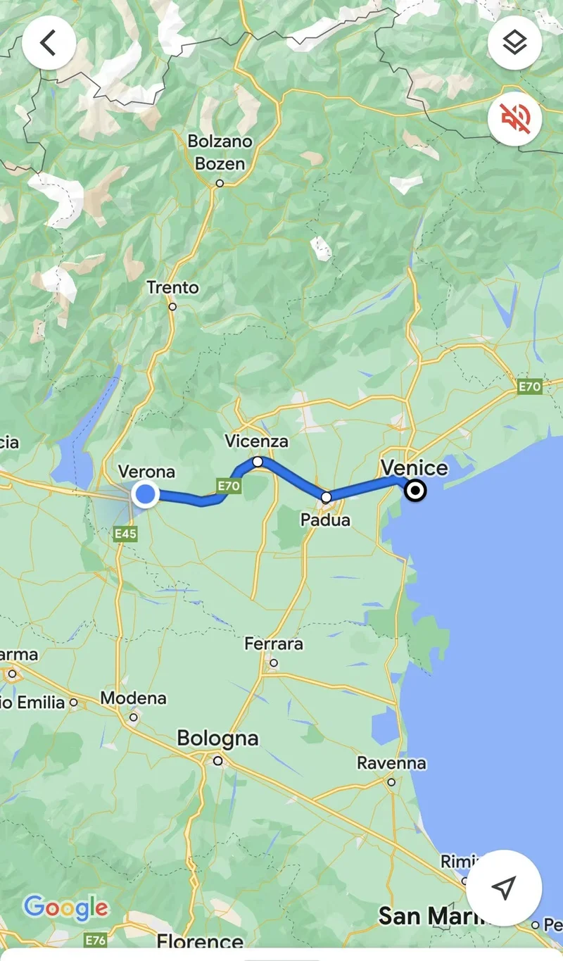 匆匆掠过Verona(维罗纳),我们前往下一站 Venice(威尼斯)。