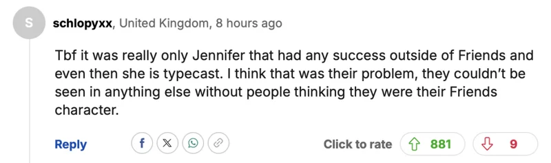 “说实话,除了《老友记》之外,真正成功的只有詹妮弗,而且她还是被定型了。