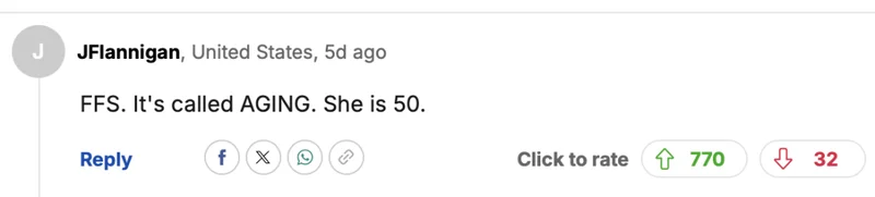 “我的天!这叫衰老。她都50岁了。”