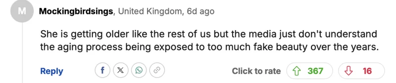 “她和我们一样都在变老,但媒体多年来接触了太多虚假的美丽,根本不了解衰老的过程。”