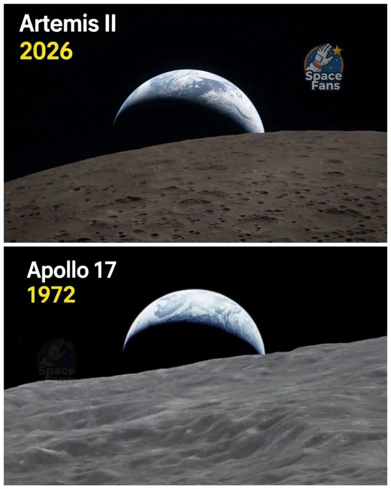 阿特弥斯II拍了很漂亮的earth rising照片,向50多年前阿波罗登月飞行及那张阿波罗8号拍摄的著名的earth rising照片致敬。