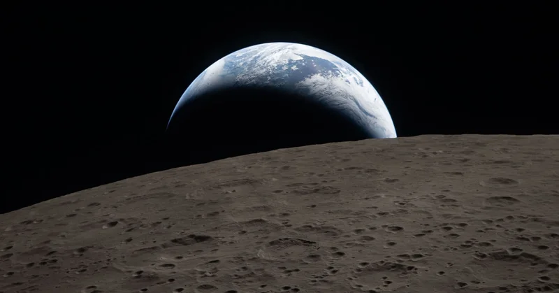 Earth seen above a large lunar boulder on the Moon during Apollo 17