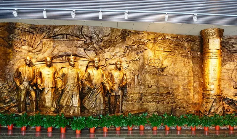 船政文化博物馆 1 楼大厅的海战雕壁十分恢宏大气。