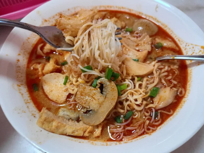 太太工作回来,大概是心情好,突然说要煮‘东炎’米粉面。
