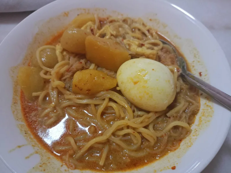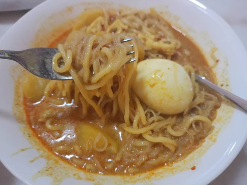 那天岳母突然来电要我过去拿她煮的咖哩面,原来下雨了每个人都想吹辣的!