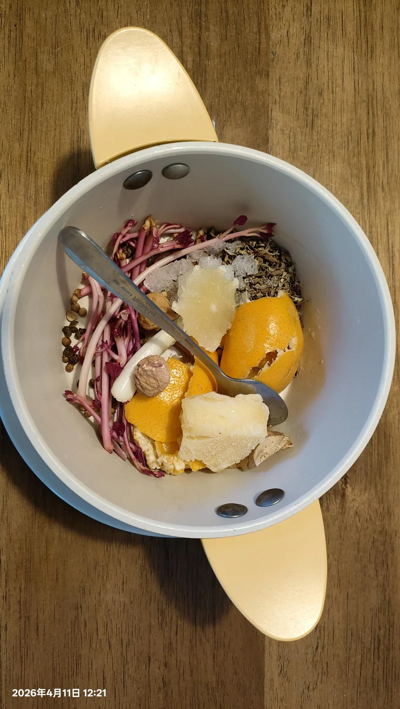 腌鸭子的材料里也有五种配料,其中三种与熬卤的十二种重合。后续煮鸭子还会放九种配料,有三种将与前面的十四种重合,所以总共会用二十种东西。