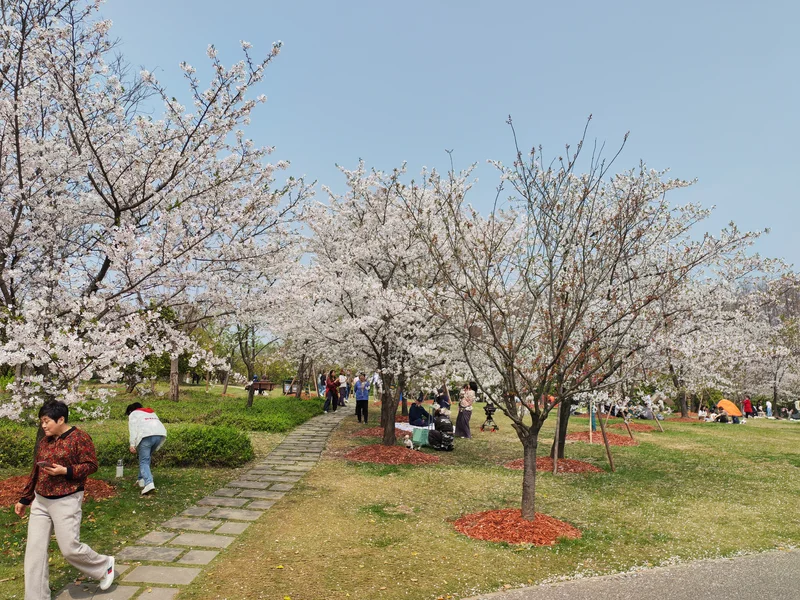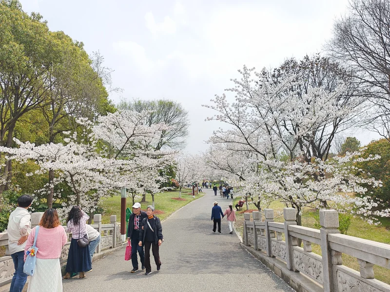 四月份正好是樱花开放季节。公园种有1万多株各品种的樱花,有长达800米的樱花大道。