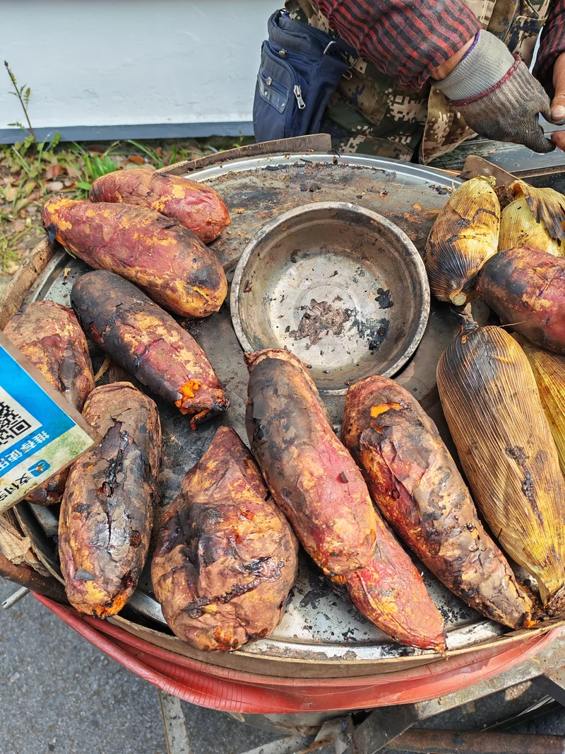 出得公园门,沿街小贩有卖烘山芋(福建叫烤地瓜)真香啊。