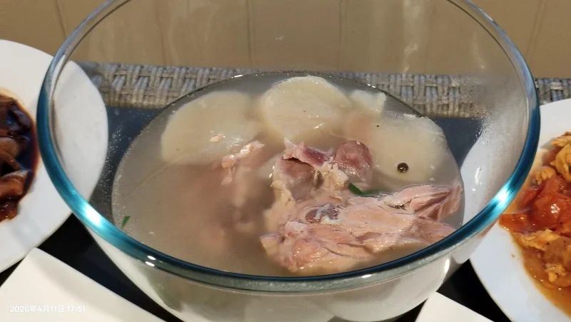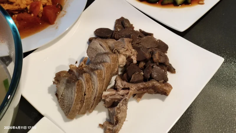 吃的乐趣不咋地。这个星期我家第一次吃午饭,所以不饿。然后鸭子还在煮,比较急火,就偷偷拉出那条撑的很开的腿切吧切吧,味道还没有完全透进。明天正式吃。