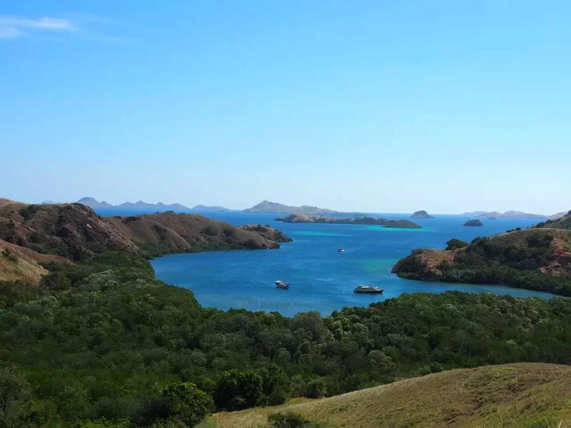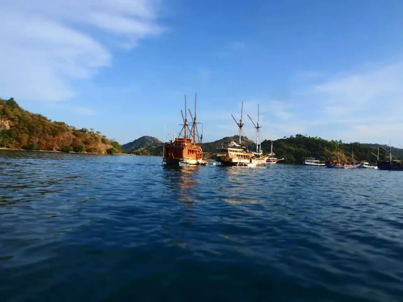 一早,我们登上了前一天预订好的木船,向林卡岛(Rinca)启程。天气出奇地好,海水清澈见底。小船缓缓离开港口,不多时,先前密集停泊的船只便被抛在身后,只剩下茫茫海面上一叶孤舟,和远处隐约可见的几艘船影。海面风平浪静,船虽不大,却几乎没有颠簸,原本那点隐约的担心,也在晴朗的天光与深蓝的海色中渐渐消散。