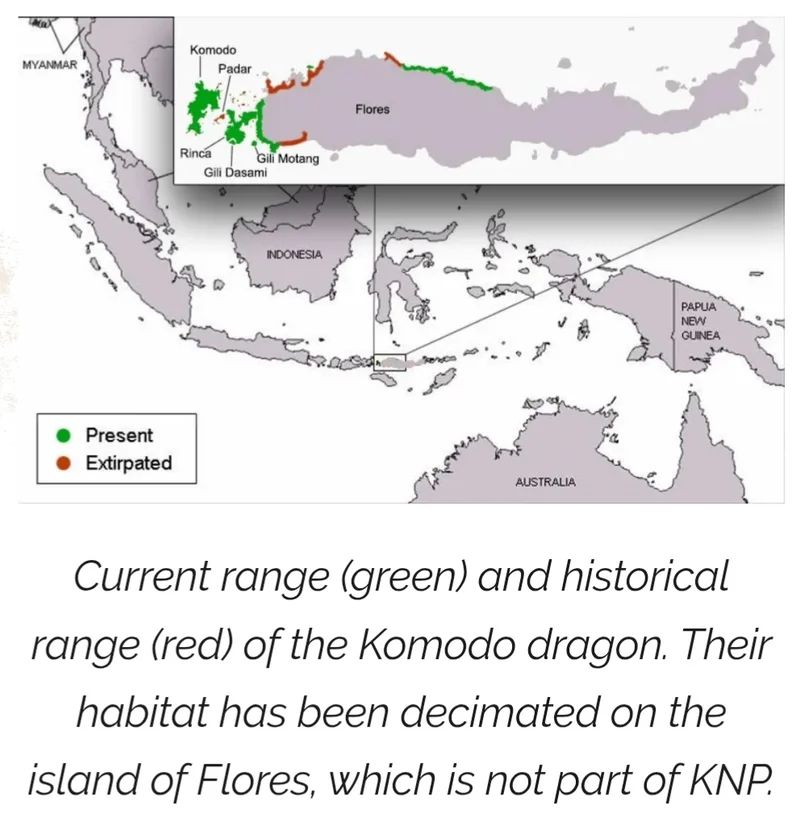 刚进园区,在护林员的指引下,我们便看见了一只体型不大的科莫多龙(Komodo Dragon),这是第一次近距离亲眼见到此物。所谓的“龙”,其实是一种巨型蜥蜴。作为现存体型最大的蜥蜴,它们仅分布在印尼的少数几座岛屿上,至今约存六千只,是一种极为古老的物种。此物于1910年被欧洲人发现,当时因不明其为何物,被命名为龙,后来经过研究,证实是一种蜥蜴。